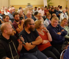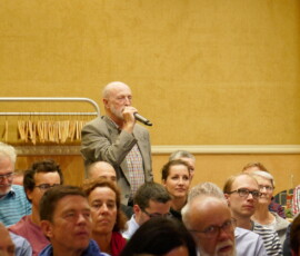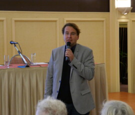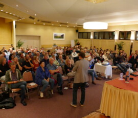 Vor vollem Saal mit mehr als 130 Zuhörern analysierte Martin Unfried das Verhältnis zwischen Medien, Protesten, Gesellschaft und politischen Mehrheiten. Dabei erklärte er am Beispiel des Klimaschutzes, wie politische Mehrheiten für grundsätzliche Umbrüche erreicht werden können und zeigte die gesellschaftlichen Vorraussetzungen auf, um solche Mehrheiten zu gewinnen.