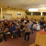 Vor vollem Saal mit mehr als 130 Zuhörern analysierte Martin Unfried das Verhältnis zwischen Medien, Protesten, Gesellschaft und politischen Mehrheiten. Dabei erklärte er am Beispiel des Klimaschutzes, wie politische Mehrheiten für grundsätzliche Umbrüche erreicht werden können und zeigte die gesellschaftlichen Vorraussetzungen auf, um solche Mehrheiten zu gewinnen.