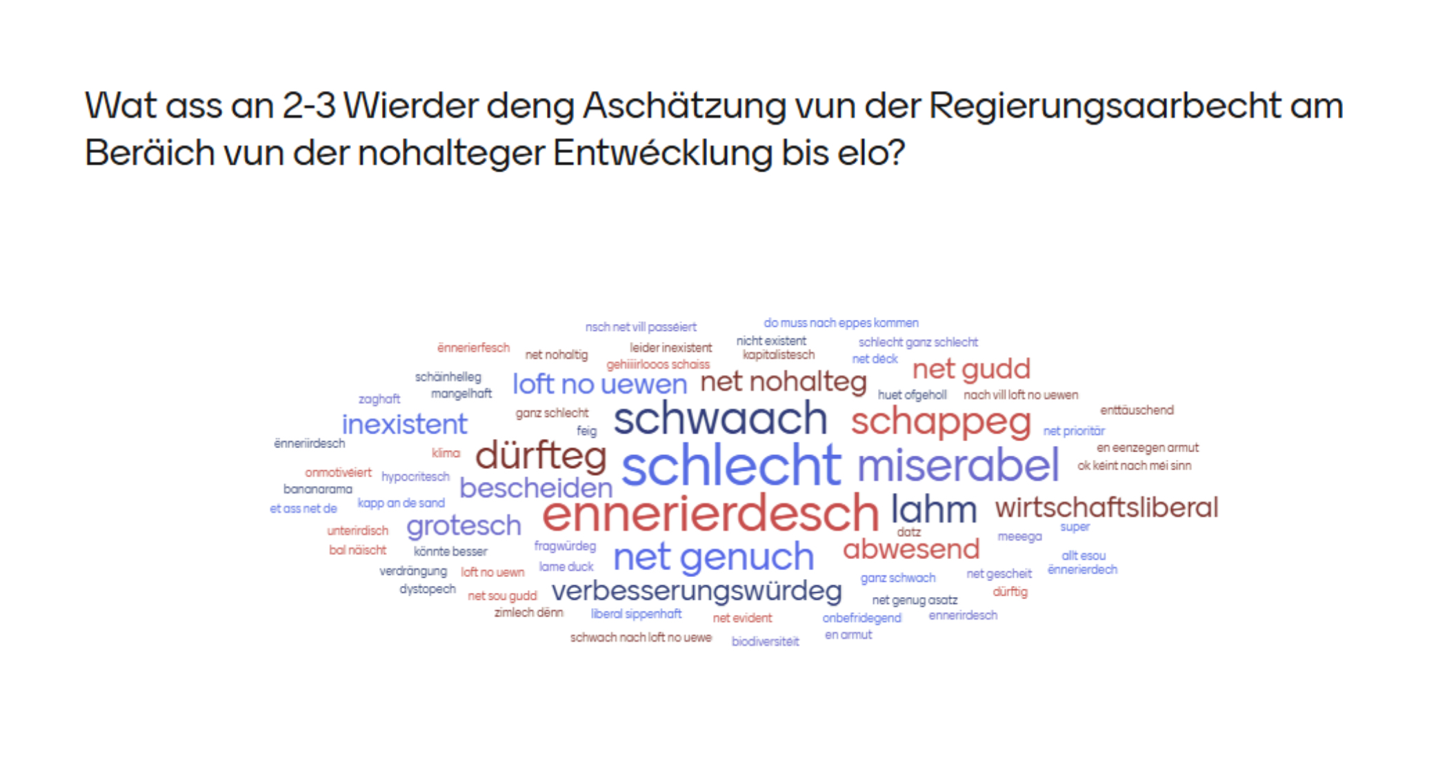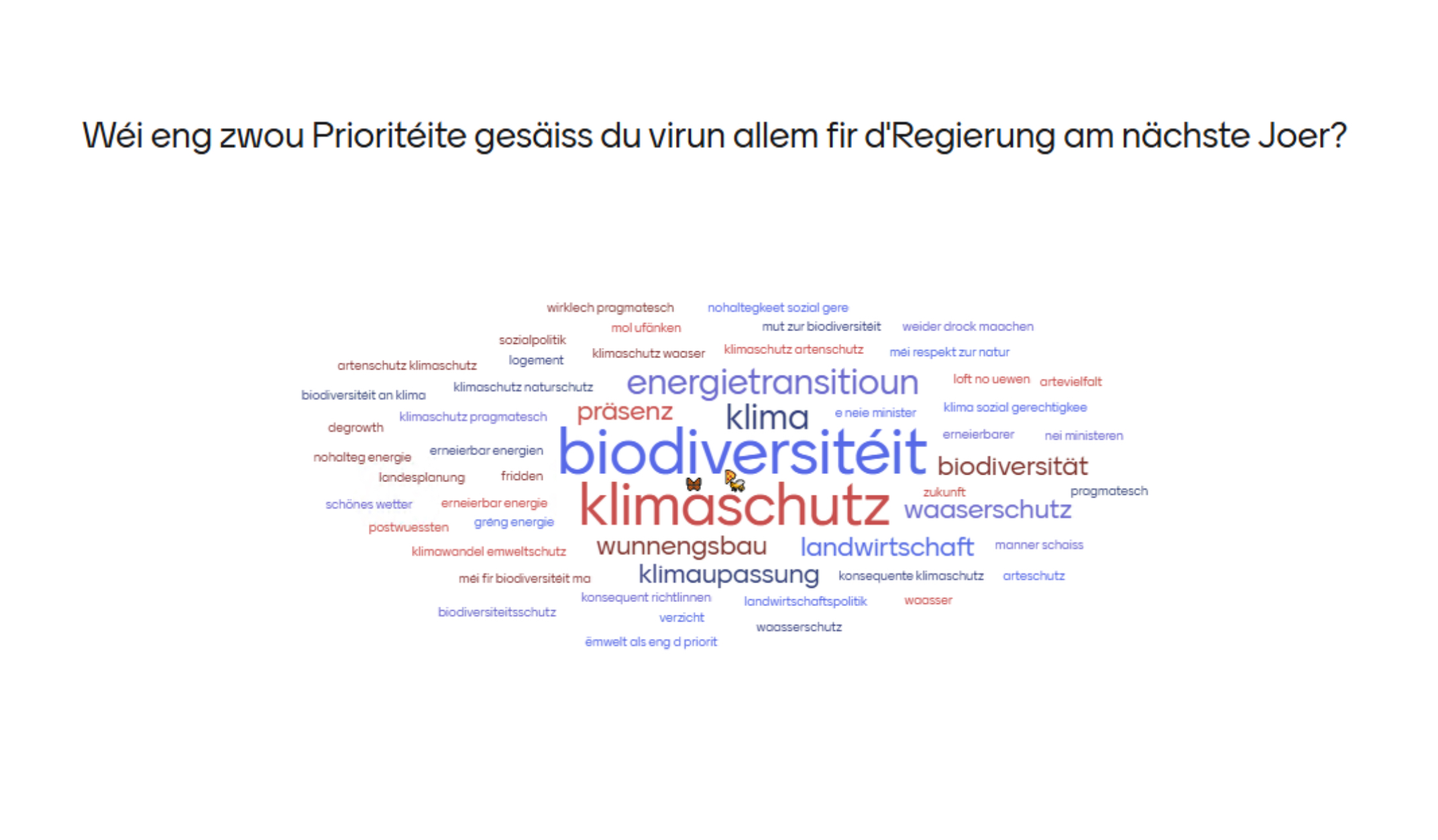 Der « Mentimeter » zu Beginn der Veranstaltung zur Einstellung der Mitglieder über die Regierungsarbeit und die Aktivitäten des Mouvement Ecologique war beeindruckend (schauen Sie sich die Resultate im pdf an), die Rede der Präsidentin Blanche Weber wurde lange applaudiert und die Aktivitätsberichte vom Mouvement Ecologique, move., Oekozenter Pafendall und dem Klima-Bündnis Lëtzebuerg waren äußerst beeindruckend!