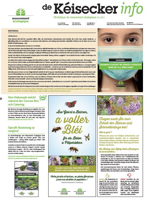An dësem Info fannt Dir niewt Informatiounen zum Projet “ A voller Bléi“ anhand vun Illustratiounen aus dem aktuelle Flyer, d`Bilanz no engem Joer „Aktioun Kéisecker“ an en Ausbléck op d`Joer 2020 wéi dës Aktioun weidergeet an aner interessant Infoen.