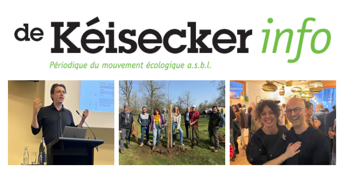 A schonn ass erëm Zäit fir e neien Kéisécker-Info mat enger Hellewull vun ënnerschiddlechen Aktiounen a Veranstaltungen. Am Fokus steet awer de „Weltartendag“ vun der UNO, ob deem de Mouvement Ecologique eng Aktioun virum Staatsministère gemaach hat. Mir hunn den Aarten eng Stëmm ginn a sinn fir e vill méi heiche Stellewäert vun der Ëmwelt- a Naturschutzpolitik agetrueden. Des Doleancen konnte mäer dem Premier Luc Frieden an dem Ëmweltminister Serge Wilmes och matdeelen. Dir fannt dat alles am Sonderdossier op de Säite 4-8, mat Video!