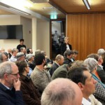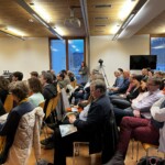 Im Anschluss fand ein „Empfang / Walking Dinner“ statt, bei dem die Teilnehmenden sich auf den Versammlungsraum, das Foyer und die Bibliothek des Oekozenters verteilten, um die Diskussionen zu vertiefen.