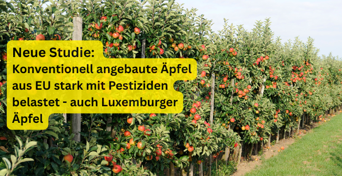 Neue Analysen zeigen: Konventionelle Äpfel – auch aus Luxemburg – mehrfach mit Pestiziden belastet und nicht für den Verzehr von Kleinkindern geeignet!