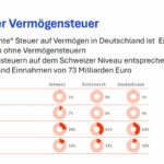 - Errechnet wurde, dass wenn in Deutschland eine recht bescheidene Vermögenssteuer eingeführt werden würde, wie es sie bereits heute in der Schweiz gibt, würden daraus etwa 73 Milliarden Einnahmen für den Staat entstehen ;