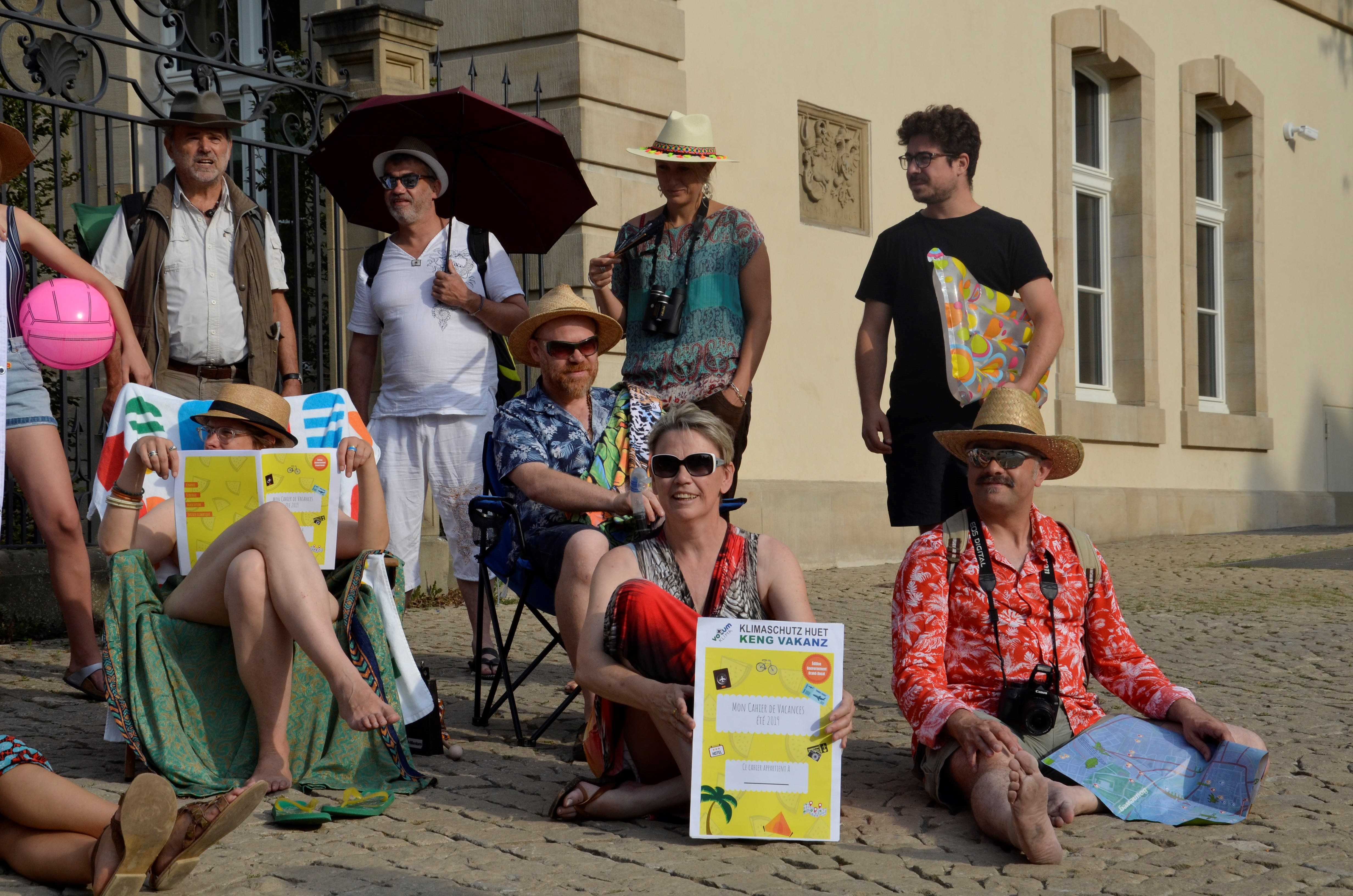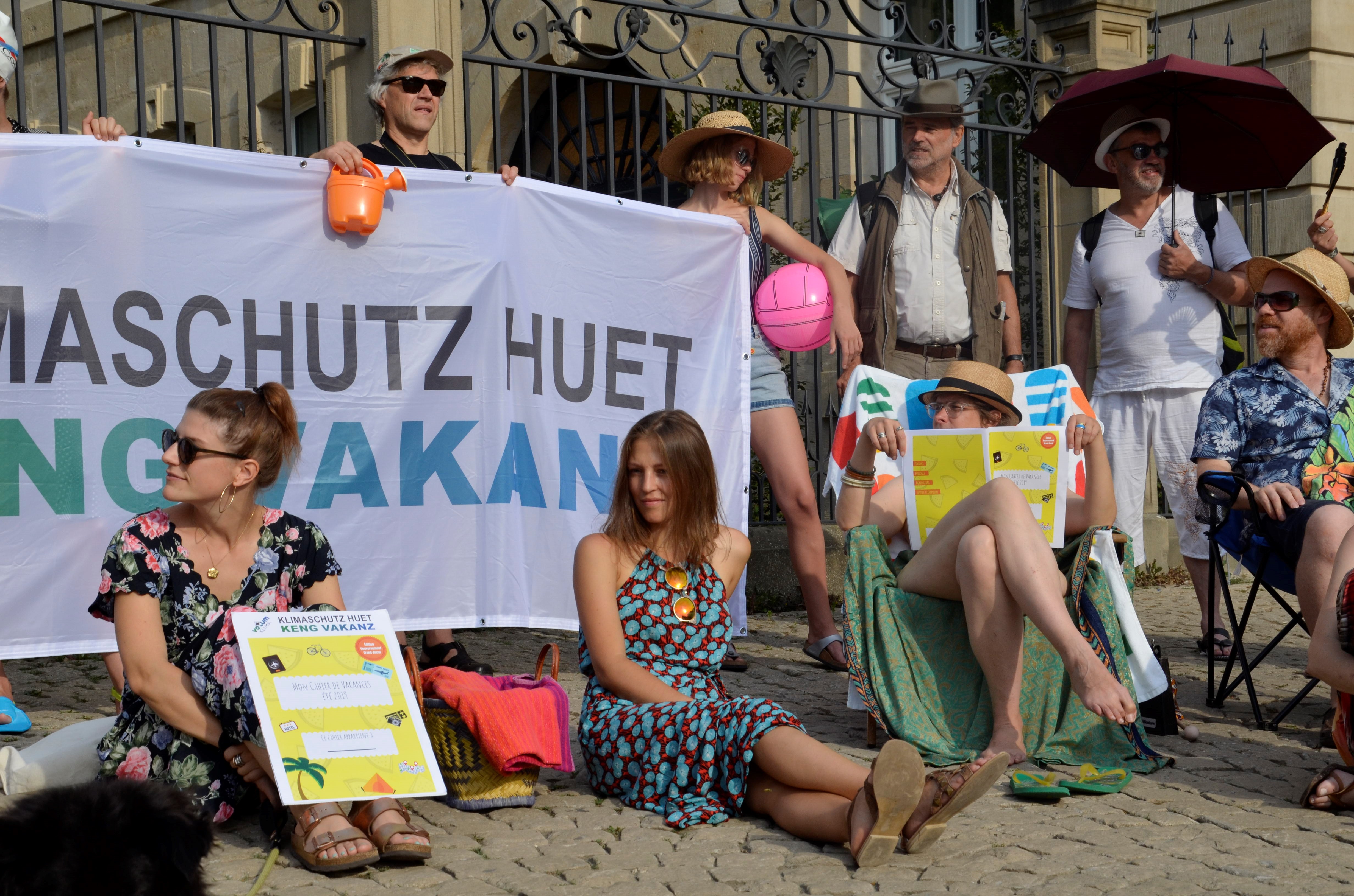 Auch wenn jetzt die Ferien beginnen, fordert Votum Klima* die Regierung mit einer Aktion vor dem Staatsministerium auf, keine weitere Zeit beim Klimaschutz zu verlieren. Es bleiben nur fünf bis maximal zehn Jahre, um einen substantiellen Kurswechsel Richtung Dekarbonisierung einzuschlagen und deshalb ist es wichtig, schnell zu agieren.