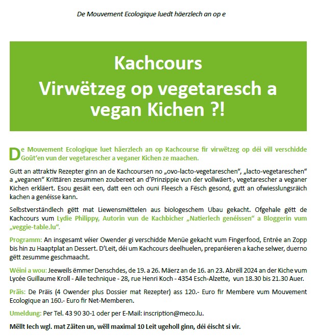 Kachcours: Virwëtzeg op vegetaresch a vegan Kichen ?!