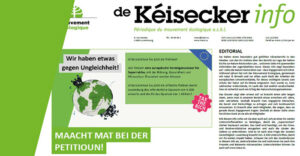 An dësem gutt gefëlltem Kéisecker-info fannt Dir: vun den EU-Walen iwwer de Bericht zur Lag vun der Natioun an alarméierend Verschmotzung vun eisem Gewässer duerch PFAS bis hin zum Nature Restoration Law… enger Säit mat spannenden Aktivitéite vun der Jugendsektioun move, Neies vun Oekotopten a Bicherrerommandatioune vun der Oekobib.