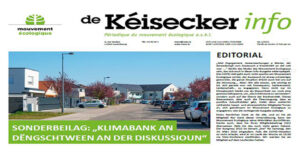 Am éischten Info vun dësem Joer fannt dir eng Invitatioun op e Webinar, d’Sonderbäilag zu den Déngschtween a Klimabank, Stellungnamen, interessant Berichter a villes méi.