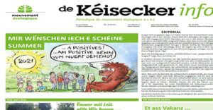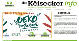 An dem leschten Info virun der Summervakanz stelle mir Iech eis Aktioun: veloskaart.lu vir. Aluedung op déi 2. Editioun vum Oekofestival am Pafendall de 24.09. an den 25.09., Aluedung op de Summercamp vu move an nach Villes méi. Mir wënschen Iech ë schéinen an erhuelsame Summer