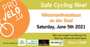 Muer, Samschden de 05. Juni organiséiert ProVelo.lu, eng Vëlosmanifestation an der Stad ënnert dem Motto: Safe Cycling Now!