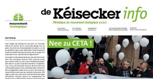 Dëse Kéisecker-Info ass staark vun CETA gepräägt an dat aus guddem Grond: Bäi de Fräihandelsofkommesse geet et ëm déi grondsätzlech Fro, wéi de Welthandel an Zukunft organiséiert soll ginn, wéi eng Interessi dominéieren, déi vun e puer multinationale Firmen oder awer déi vun der Allgemengheet?!