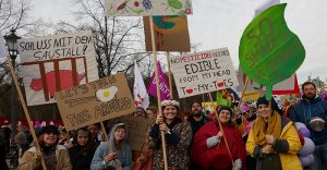 „Wir haben es satt“ ist die europaweit größte Demonstration für eine nachhaltige Landwirtschaftspolitik statt Agrarindustrie, Massentierhaltung und der Orientierung der Landwirtschaft am Weltmarkt. Getragen wird sie von über 50 Organisationen.