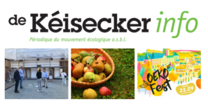 Den éischte Kéisecker-info no der Summervakanz ass besonnesch gefëllt. Dir sidd erëm häerzlech op d’Oekofest invitéiert, dat – niewent dem attraktive Programm – och d’Geleeënheet bidde soll, sech no der Summervakanz ze begéinen, auszetauschen, zesummen ze entspanen an ze feieren. Kuckt laanscht! Bréngt och Frënn mat.