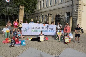 Auch wenn jetzt die Ferien beginnen, fordert Votum Klima* die Regierung mit einer Aktion vor dem Staatsministerium auf, keine weitere Zeit beim Klimaschutz zu verlieren. Es bleiben nur fünf bis maximal zehn Jahre, um einen substantiellen Kurswechsel Richtung Dekarbonisierung einzuschlagen und deshalb ist es wichtig, schnell zu agieren.