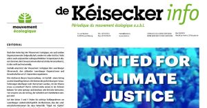 Klima ass eent vun den Themen an dësem Info, als Opruff fir de Klimamarsch, Aluedung op eng Konferenz oder Bäitrag vum Klima-Bündnis Lëtzebuerg. Awer wéi ëmmer fannt Dir och nach aner interessant News a Veranstaltungen: vun den traditionellen Energiewochen iwwer eng Konferenz zu de Fräihandelsofkommen bis zu enger flotter Wanderung ….