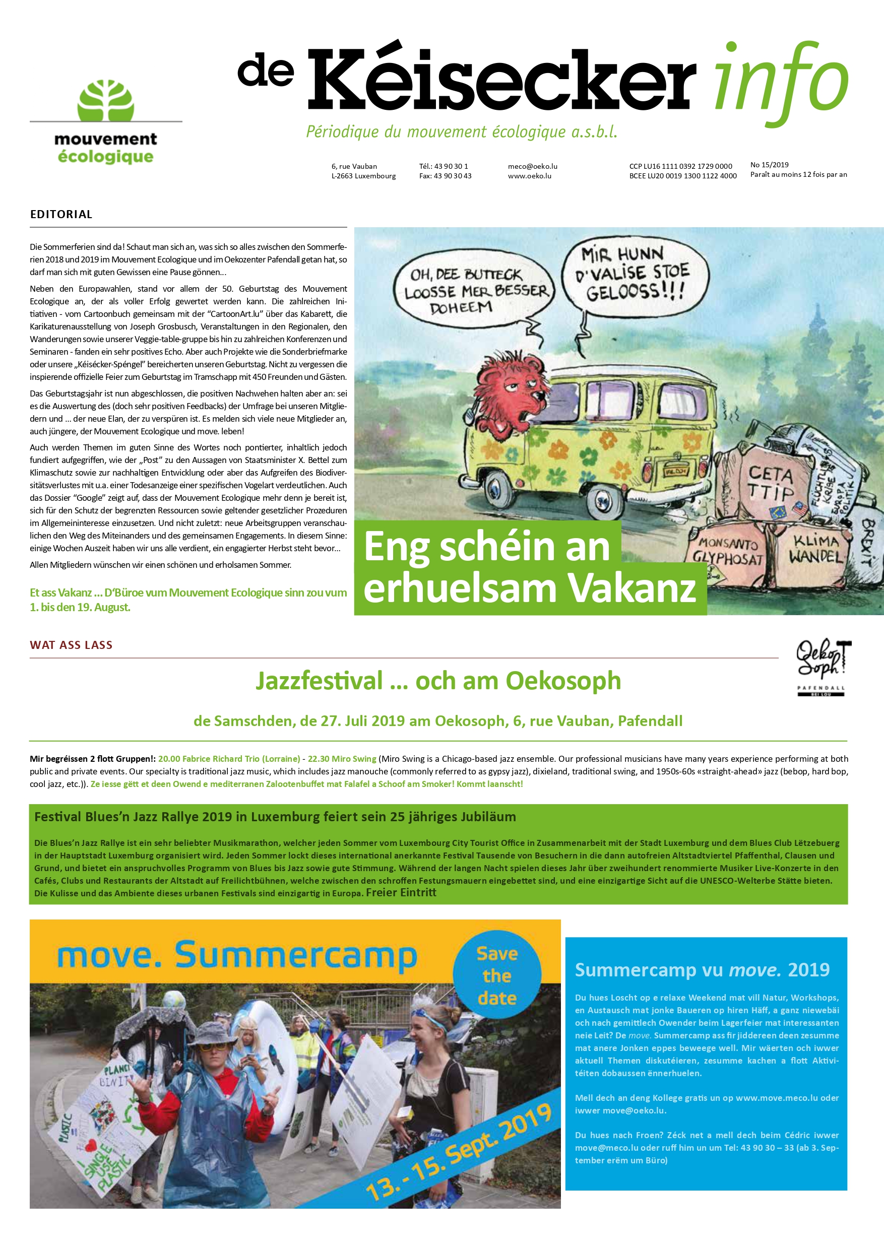 Eng flott Aktioun vun eiser Jugendgrupp move., e puer Impressioune vum « Alles op de Vëlo », Beweegung am Dossier Google, eng gemeinsam Stellungnam vun de Plattformen « Stopp CETA & TTIP » an « Meng Landwirtschaft », an deenen de Mouvement Ecologique ganz aktiv ass, a villes méi fannt Dir am neie Kéisécker-Info