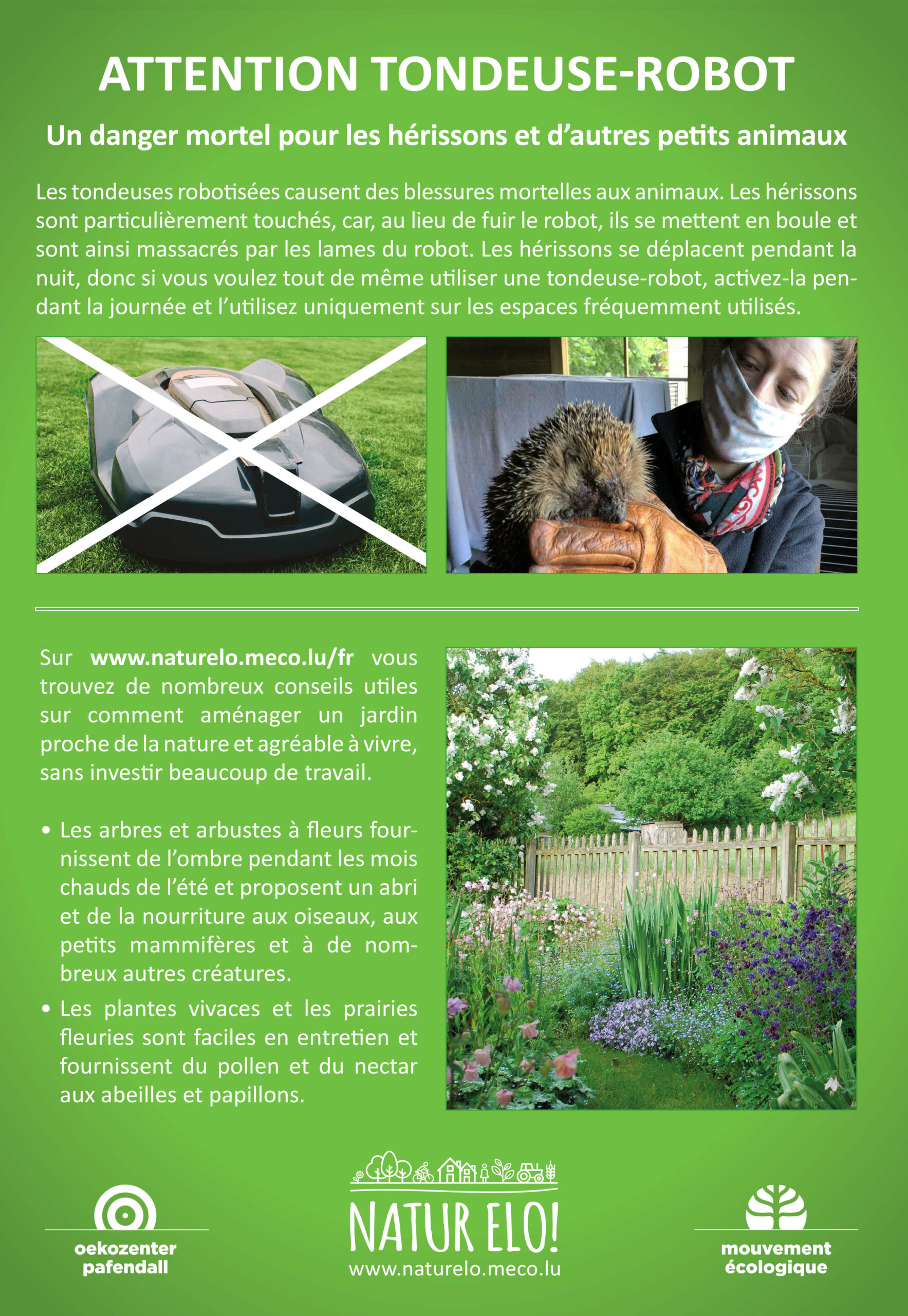 ATTENTION TONDEUSE-ROBOT – Un danger mortel pour les hérissons et d’autres petits animaux.