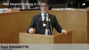 La Wallonie s’oppose à CETA ! Nous la soutenons : une intervention remarquable de Paul Magnette, minstre-président de Wallonie. En espérant qu’il résiste à la pression de l’UE et qu’il tient à son « NON » à CETA. Où est-il, notre gouvernement ?