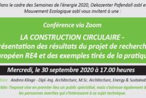 Semaines de l’énergie – Conférence via Zoom : LA CONSTRUCTION CIRCULAIRE – Présentation des résultats du projet de recherche européen RE4 et des exemples tirés de la pratique